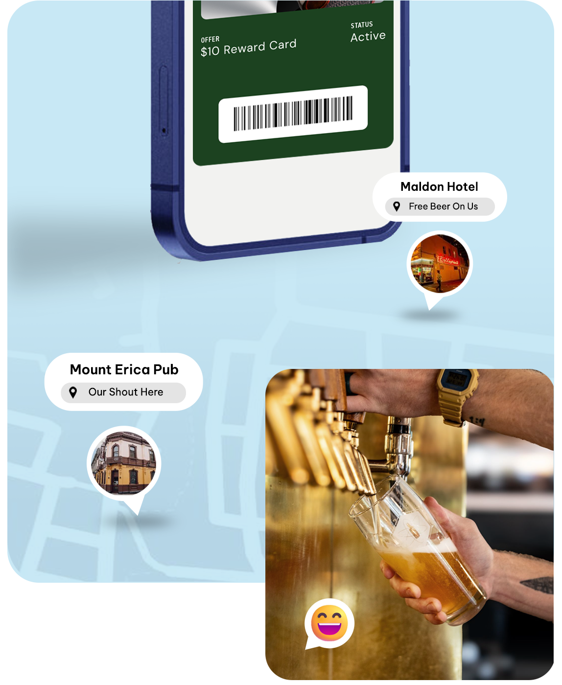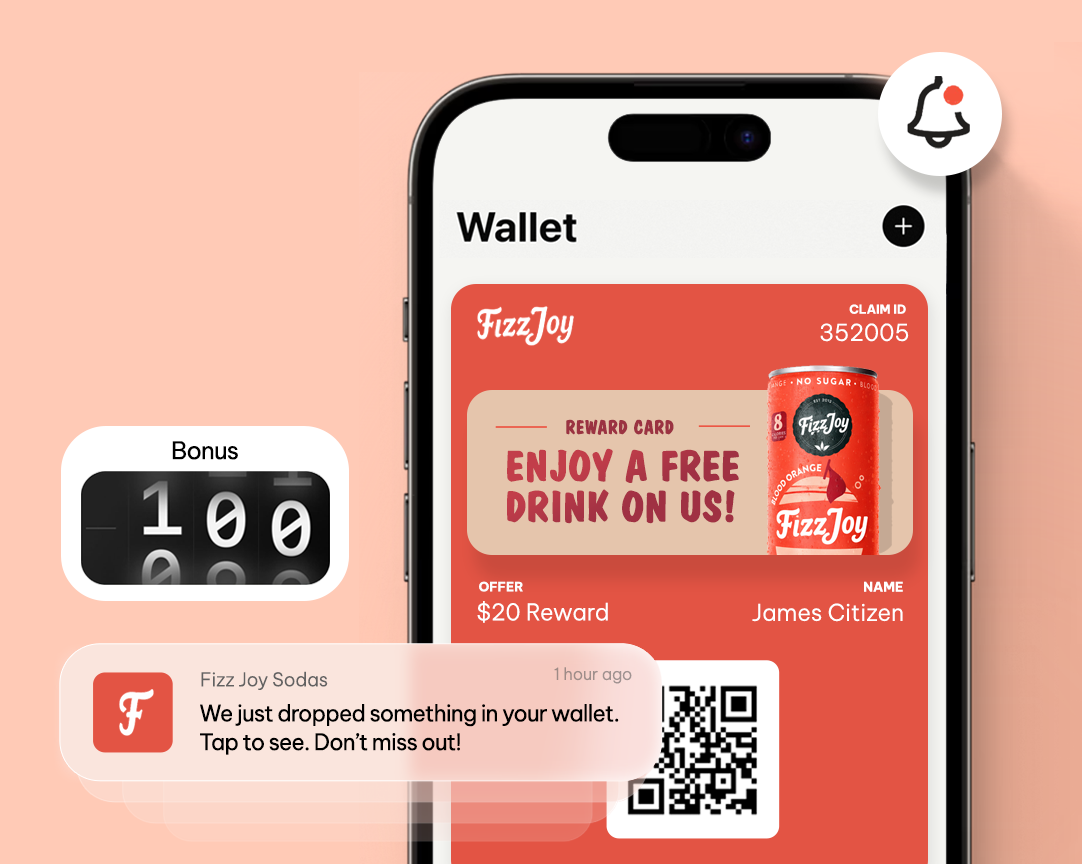 Powering a seamless ecosystem where brands stay top-of-mind and customers engage effortlessly. Rewards are sent and live in the wallet, update in real time, stack automatically and surface only at the right moments. With lock-screen notifications and alerts for offers that actually get seen and not buried somewhere in an inbox.