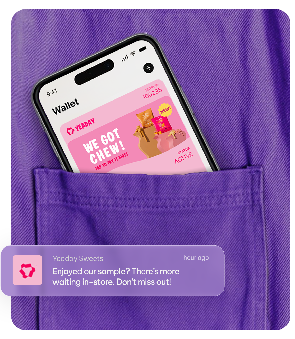 Turn one-off activations into ongoing engagement by keeping the pass live in the customer’s wallet. Update offers, trigger reminders and re-engage customers weeks or months later without asking them to download an app or opt in again.